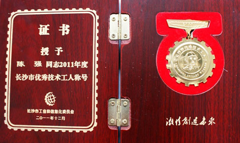 2012年2月17日,在长沙市企业技术创新大会上,中欧网页版锯床生产部陈强荣获“长沙市优秀技术工人”的光荣称号,展现了中欧网页版一线技术工人的风采。